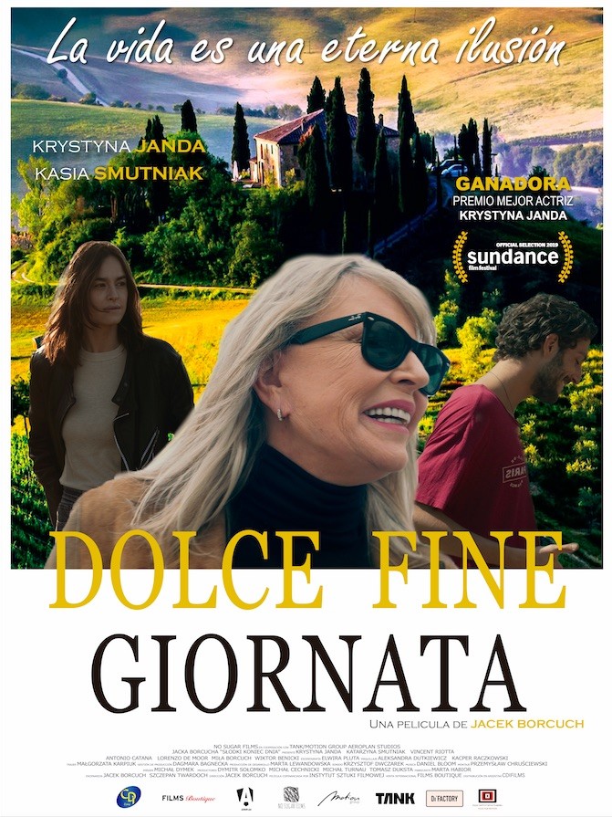 Hay en el comienzo de Dolce fine giornata una reunión en una bella casa de la Toscana italiana, encuentro social plagado de intelectuales, donde se habla de política, de arte y de las dos cosas juntas, que sigue la tradición de cierta parte del cine italiano (aunque se trate de un film polaco, dirigido por Jacek Borcuch) de ofrecer una mirada entre existencialista e ideológica de su sociedad y a partir de una verborrea que suele ser divertida. Pero es una secuencia, además, que sirve como síntesis del universo que habitaremos los próximos 90 minutos, sus personajes, el mundo que los alberga y el que intentarán detonar con sus ideas. Este prólogo culmina con una secuencia musical, en la que todos marchan hacia el parque bajo la luz de la luna, bailando y moviéndose ampulosamente. Parece, sin dudas, un pasaje dirigido por el Paolo Sorrentino que quiere ser Federico Fellini, y uno empieza a temblar. Pero no, es apenas una mera ilusión, tal vez la falsificación propia de un director extranjero que filma en otro país con códigos que le son ajenos. O tal vez Borcuch quiera decir algo sobre su protagonista, la escritora polaca Maria Linde (Krystyna Janda), quien abrazó Italia cuando su país fue sometido por el comunismo y tuvo que aprender a vivir y simular esa otra identidad europea que no siente como propia.
